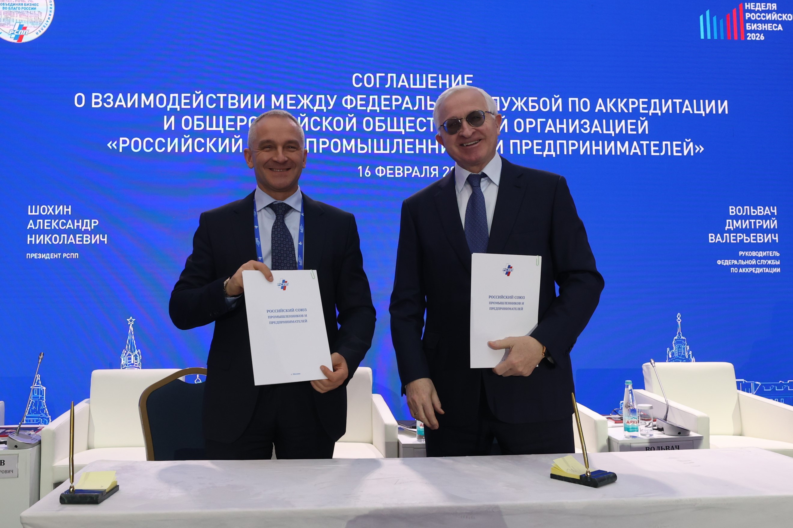Свои подписи под документом поставили руководитель Росаккредитации Дмитрий Вольвач и президент РСПП Александр Шохин. Стороны договорились о развитии партнерских отношений и совместной работе по ключевым направлениям в области аккредитации и оценки соответствия.