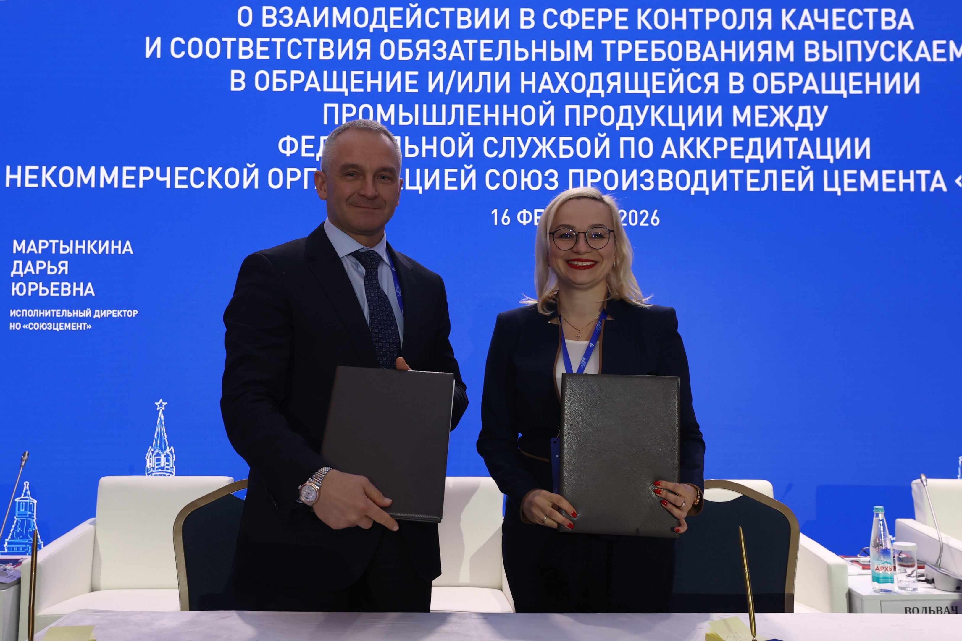 Было подписано Соглашение о взаимодействии в сфере контроля качества и соответствия обязательным требованиям, выпускаемой в обращение и/или находящейся в обращении промышленной продукции между Некоммерческой организацией Союз производителей цемента «СОЮЗЦЕМЕНТ» и Федеральной службой по аккредитации.